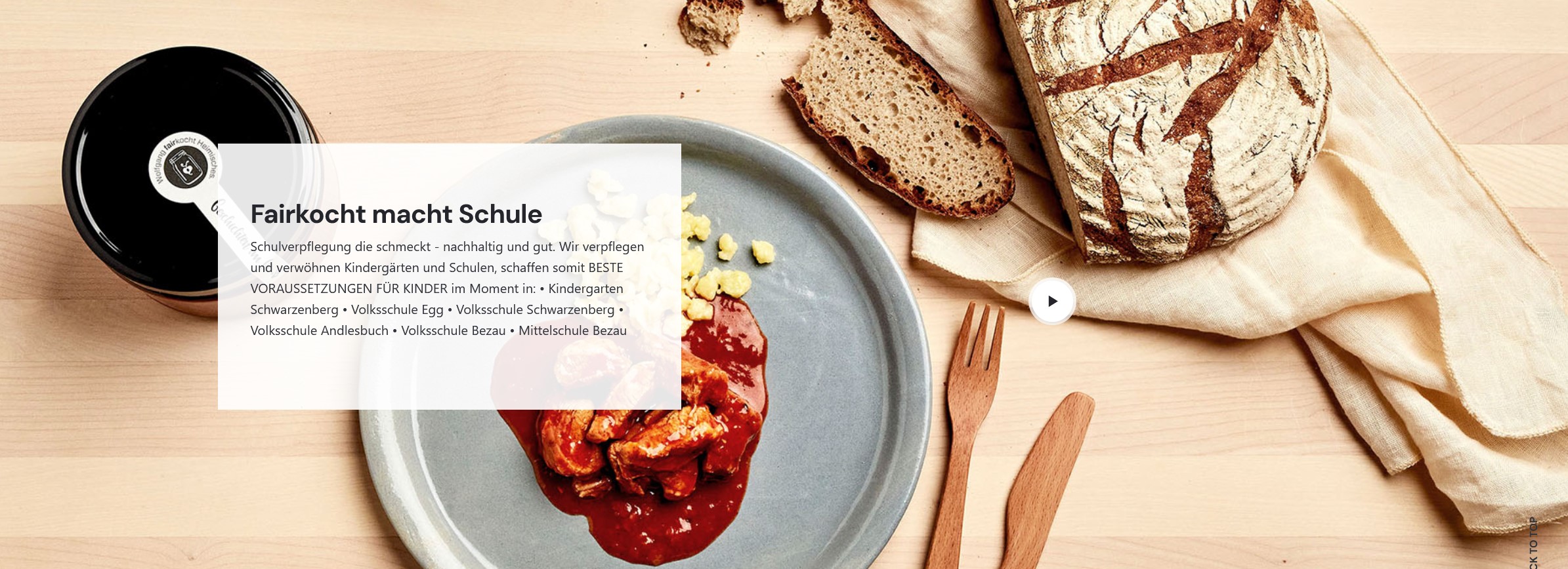 Schulverpflegung, die schmeckt - nachhaltig und gut. Das ist das Ziel von Fairkocht. Regional in der Gemeinde Andelsbuch verankert versorgt Fairkocht Kinder in der Schule. Für die Kinder wird eine ausgewogenen Ernährung mit besten Zutaten durch eine regionale und saisonale Produkte zu Verfügung gestellt. Kurze Lieferwege ermöglichen einen niedrigen CO2 Fußabdruck. Hierzu wird mit regionalen Bauern kooperiert. Gleichzeitig findet bei den Kinder eine Bewusstseinsbildung zu regionalen und saisonalen Lebensmitteln statt. https://www.fairkocht.at/macht-schule/ Das Angebot Fairkocht wurde für die Schulen in der Marktgemeinde Bezau konzipiert, die Machbarkeit evaluiert und schließlich erfolgreich umsetzt. Ziel ist es die Verpflegung langfristig über Fairkocht sicherzustellen.